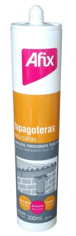 Sellador butílico gris Afix Articoll Tapagoteras en cartucho de 300 ml, ideal para techos, canaletas y juntas. Alta elasticidad y resistencia a la humedad y rayos UV.