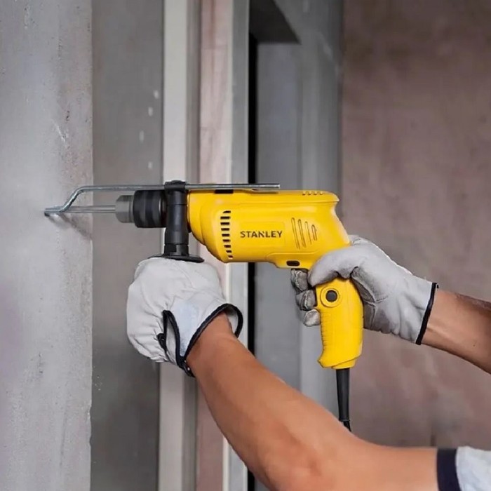 El Stanley SDH600 es un taladro percutor de **600 W** y mandril metálico de ½″, ideal para perforaciones en materiales duros como madera, metal y albañilería. Cuenta con control de velocidad, función reversible y empuñadura auxiliar ergonómica para mayor precisión y comodidad en el uso prolongado.